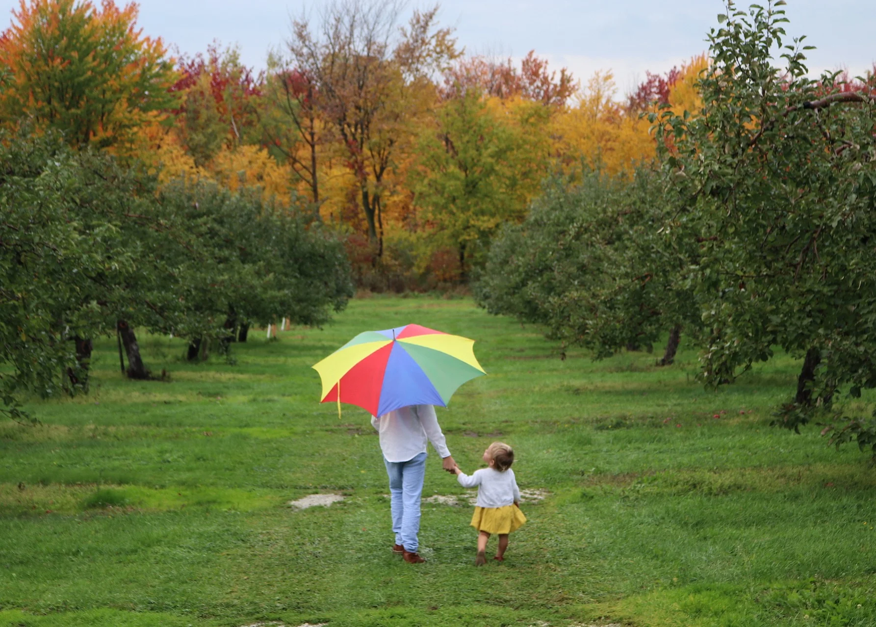 Aiden wanted to make sure not a drop of rain was going to touch him. Olive looked up at him almost their whole stroll. It was adorable to watch.