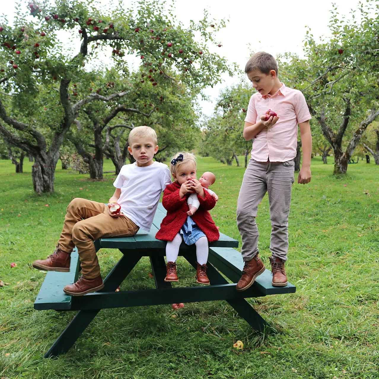 On the drive back we stopped at an Apple Orchard and let the kids stretch their legs. I am such a sucker for Apple Orchards. They are so beautiful with all the green with pops of red throughout. This orchard was actually one of my favorites that I have ever been to. The trees were so tall that you had to stand on a huge red ladder to reach the apples you wanted to pick. It was beautiful and the apples were so good. I think my samplers enjoyed them too.